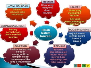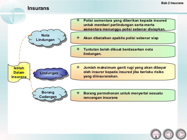 Insuran ditakrifkan sebagai peralihan samarata risiko kemungkinan kerugian daripada satu entiti kepada yang lain sebagai pertukaran untuk bayaran dan tugas bagi penjagaan dan difikirkan. Istilah Dalam Insurans Nota Lindungan Nota Lindungan Polisi sementara yang diberikan kepada insured untuk memberi perlindungan serta-merta sementara menunggu polisi sebenar disiapkan. ISTILAH DALAM INSURANS.