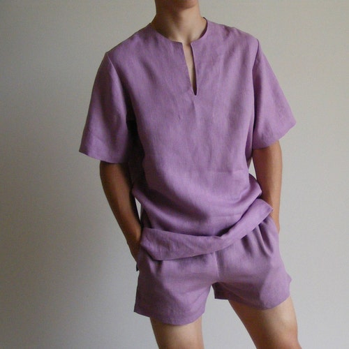 Mens Linen Short Sleeve Shirt Dusty Pink Color Linen Beach Etsy